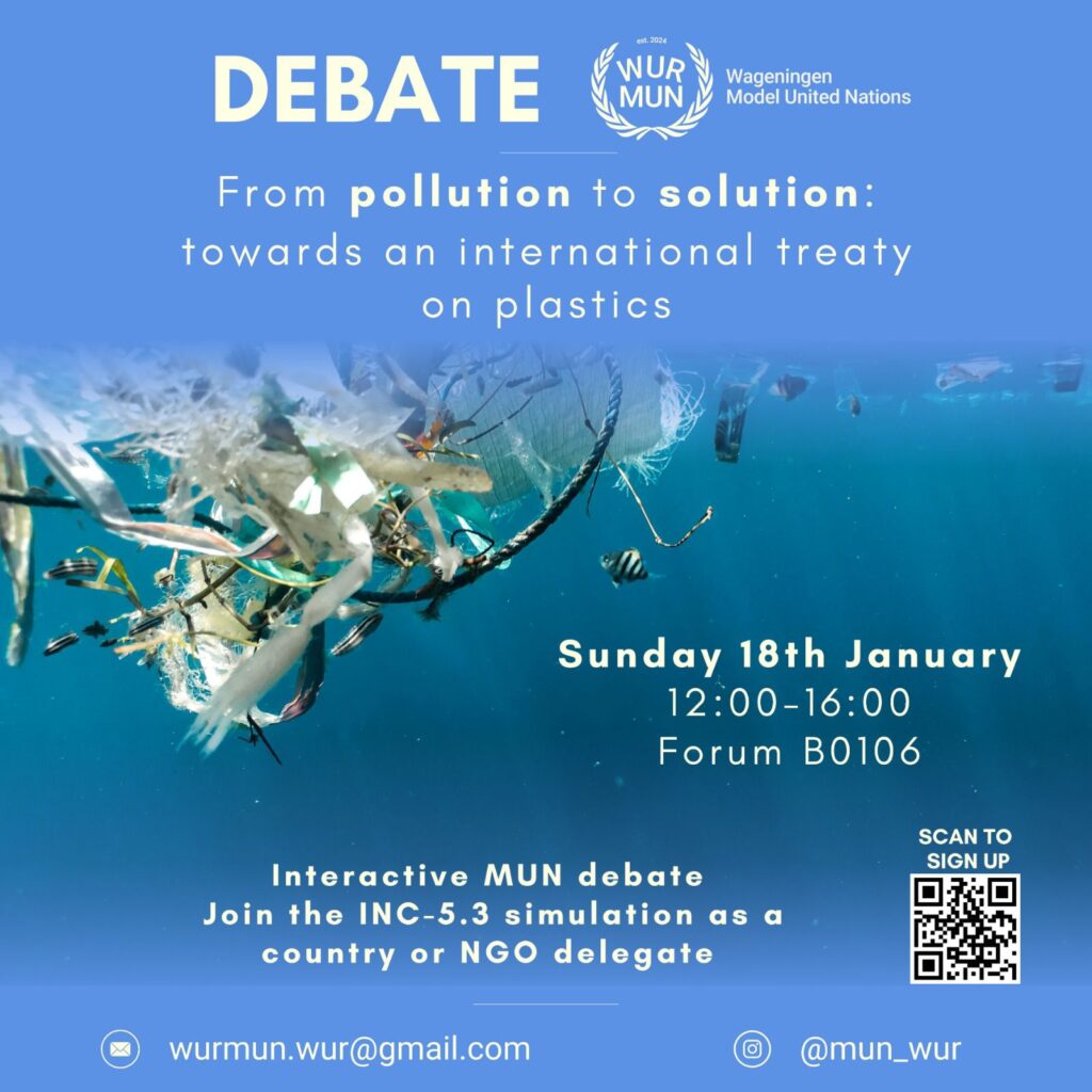 Join WURMUN for an interactive MUN debate on the development of a Global Plastics Treaty.