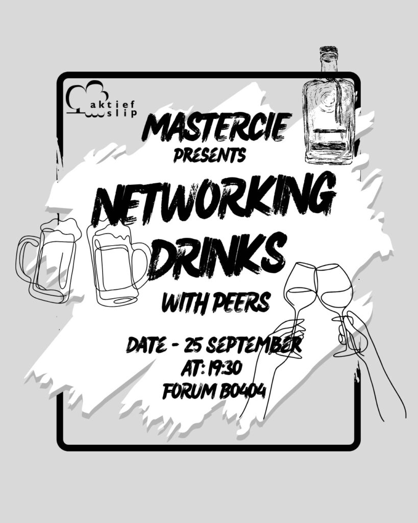 🍻✨ Ready to meet new people and expand your network? Join the MasterCie Networking Drinks on 25 September at 20:30! This is the perfect chance to connect with fellow students, share experiences, and build friendships — all in a relaxed and fun setting. Whether you’re new in Wageningen or already know your way around, grab a drink, start a conversation, and enjoy the evening with your peers. Don’t miss it!