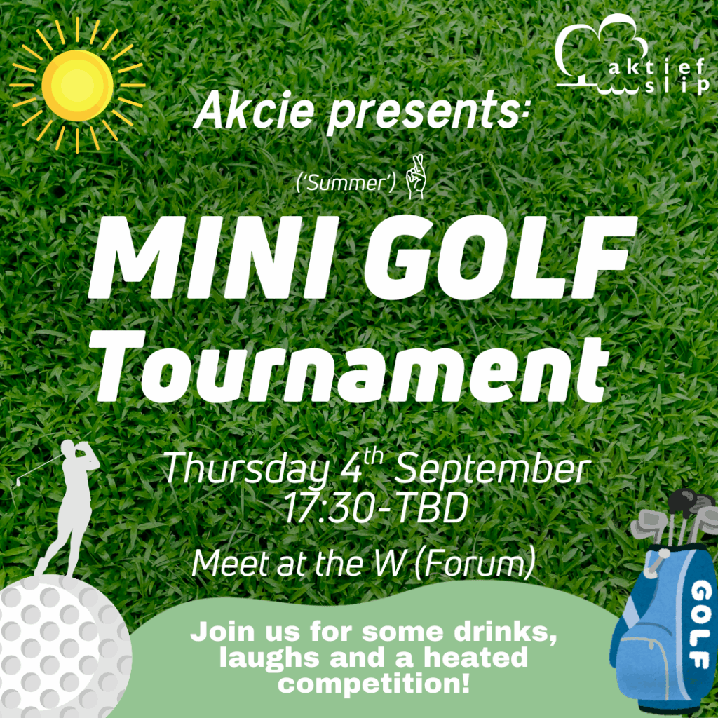 Hello dear members,What better way to start the year by beating your friends (or friends to be😉) in an epic mini golf tournament?? Join us on the first Thursday of the academic year for a mini golf tournament in Rhenen! It’s also a perfect way to start your night, should you want to prolong it😈 We’ll provide drinks, directions and FREE mini golf, so sign up in the link below!Note: we will cycle to Rhenen all together, meeting at the W in front of Forum at 17:30, leaving at 17:45. We aim be back in Wageningen around 21:00