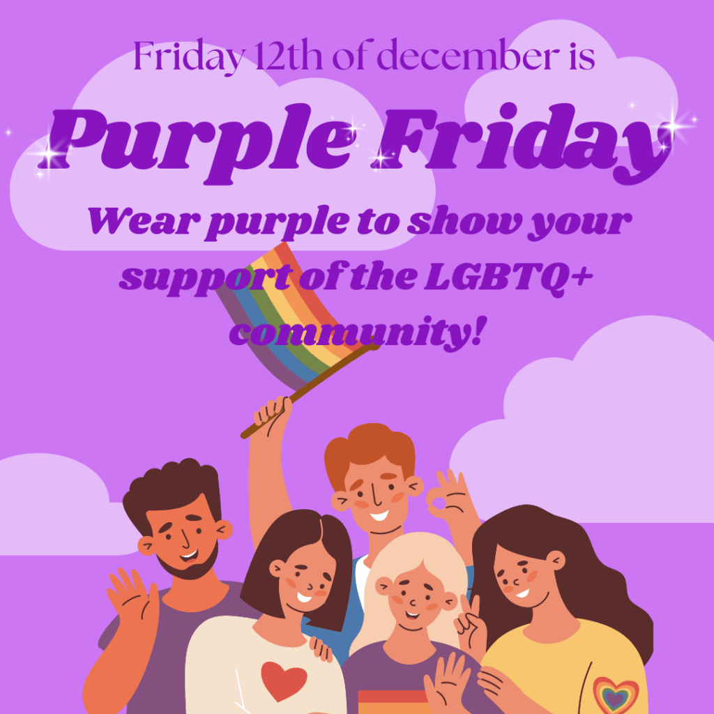 Friday 12 December is purple Friday💜! This is a day where we invite you to wear purple to show your support of the LGBTQ+ community🏳️‍🌈. Whether you show up fully decked out in a purple suit 🕴️, or just chose to wear some nail polish💅, a touch of purple shows that you want everyone to be unapologetically themselves🌈!